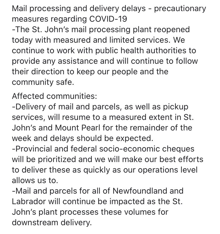Mail delivery alert for Newfoundland and Labrador