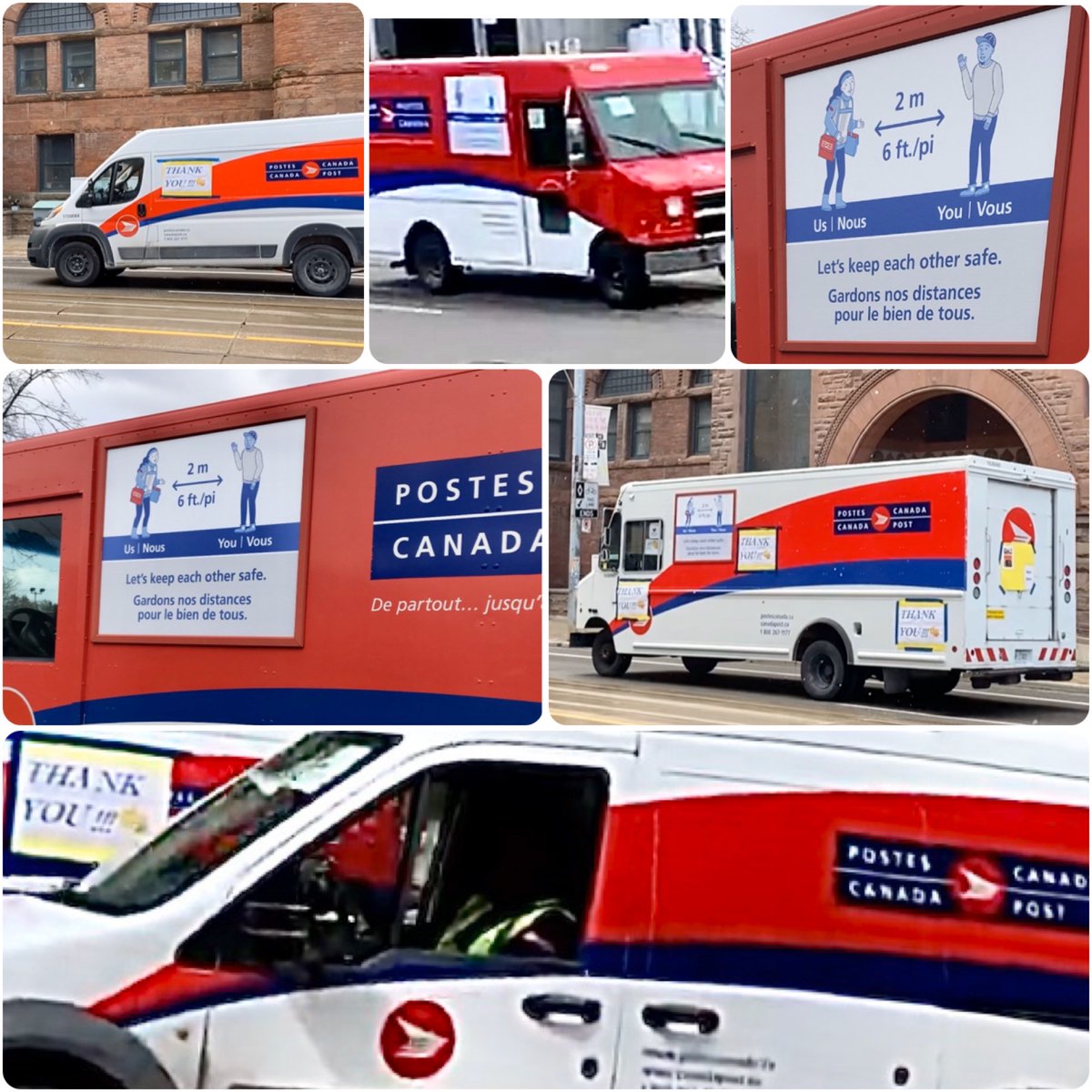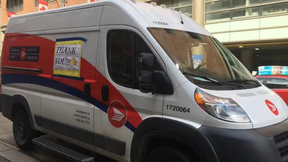 Thank you to all essential workers. Toronto postal workers @canadapostcorp are rolling through Toronto this morning to salut you. Please #StopTheSpread keep a safe distance with those delivering your mail. Here is a pic of my husbands postal van today. #COVID19 #healthcareheroes pic.twitter.com/zWIq3h2t77