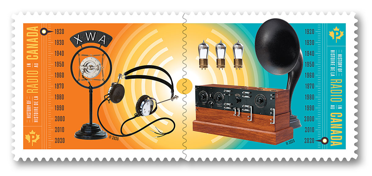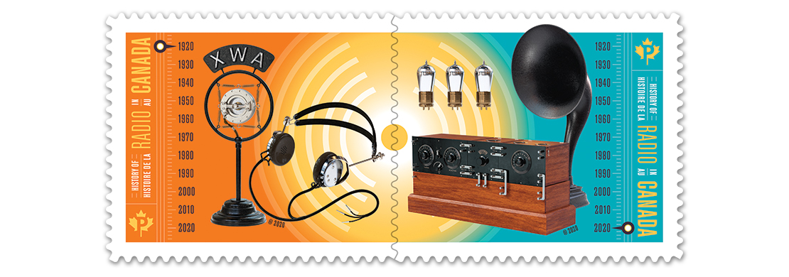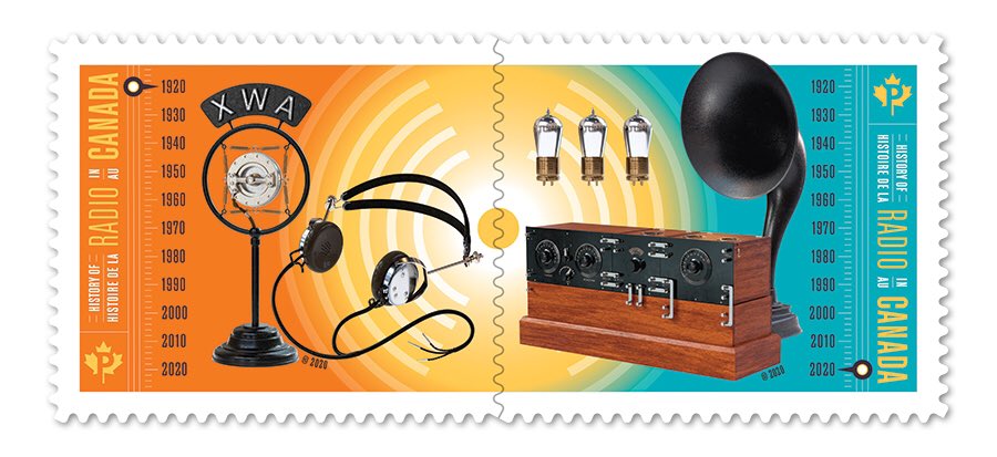A pair of colourful stamps celebrating 100 years of radio history was issued by @canadapostcorp on May 20, exactly one century after an early broadcast by one of the world’s first radio stations, XWA in Montréal.